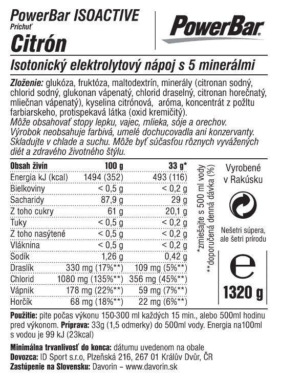 PowerBar IsoActive - izotonický športový nápoj 1320g Citrón
