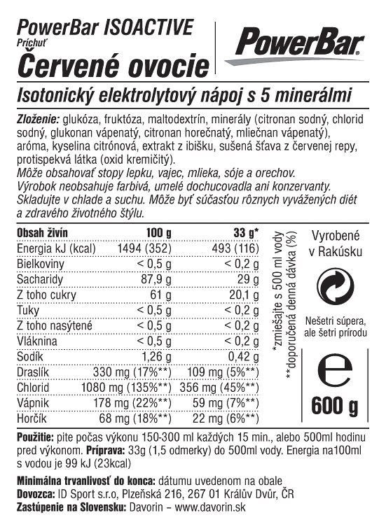 PowerBar IsoActive - izotonický športový nápoj 600g č. ovocie