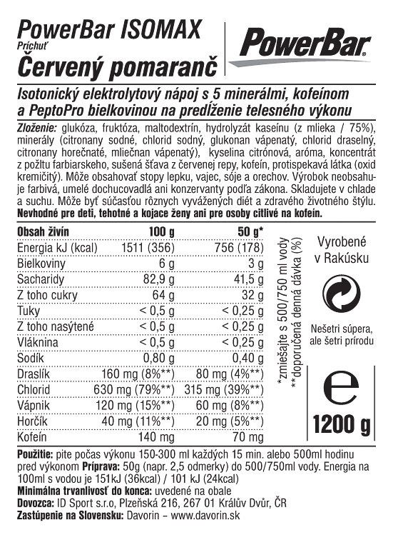 Iontový nápoj PowerBar IsoMax je určený na intenzívne tréningy a preteky. Obsahuje všetky nutričné zložky, ktoré tvoje telo potrebuje na úspešné zvládnutie akejkoľvek dlhodobej fyzickej záťaže. Hydratuje, dodáva energiu, podporuje vytrvalosť a tiež regeneruje. Dokonalý nápoj pre tvoj vytrvalostný šport! Príchuť červený pomaranč.