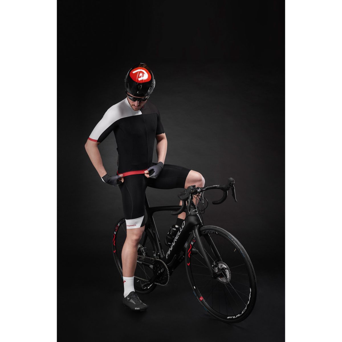 Pinarello kraťasy s trakmi POWER Think Asymmetric čierne/biele/červené