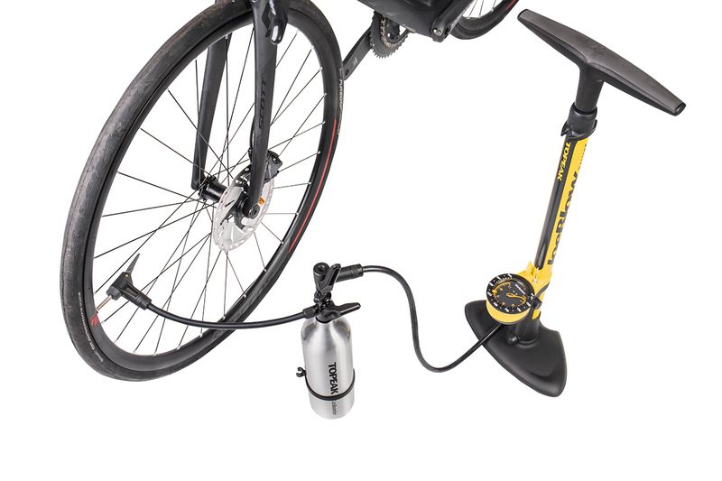 Plnohodnotné riešenie pre hustenie bezdušových pláštov pomocou klasickej dielenskej hustilky. Táto sada funguje ako mini kompresor, ktorý umožňuje bežným hustilkám natlakovať vzduch do 1000 ml duralovej tlakovej nádoby a potom ho s veľkým objemom vypustiť do tubeless plášťa.